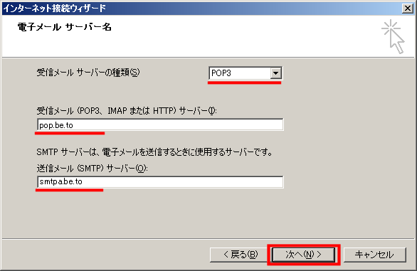| 送信メール(SMTP)サーバー | smtpa.be.to |