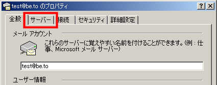 10.設定画面が表示されますので、「サーバー」タブを選択します